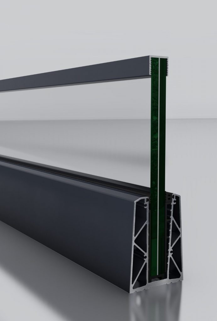 Acest tip de balustrada a balconului/terasei se monteaza intr-un profil continuu din aluminiu direct pe podea si este prevazut standard pe bara de 6ml.