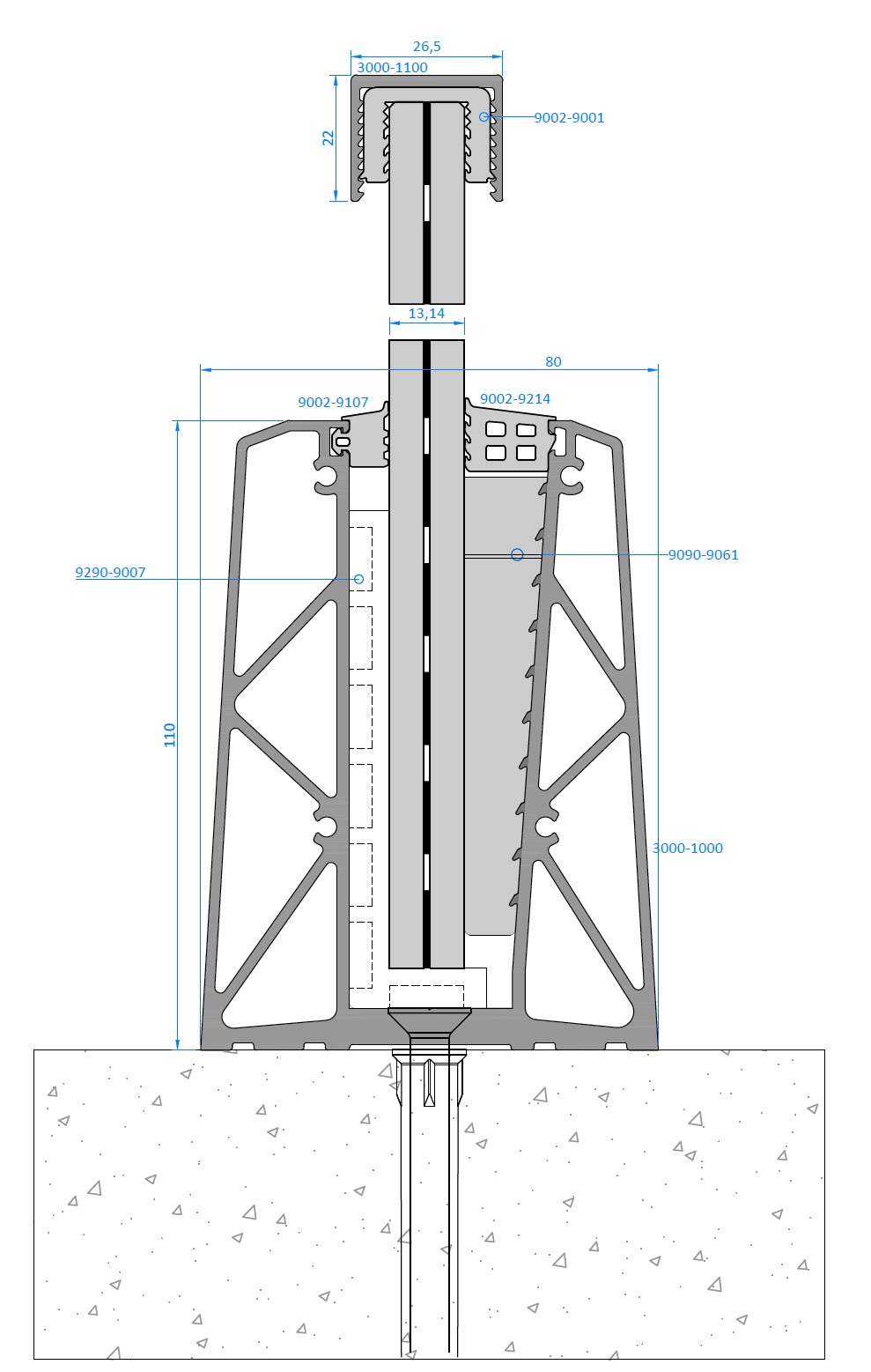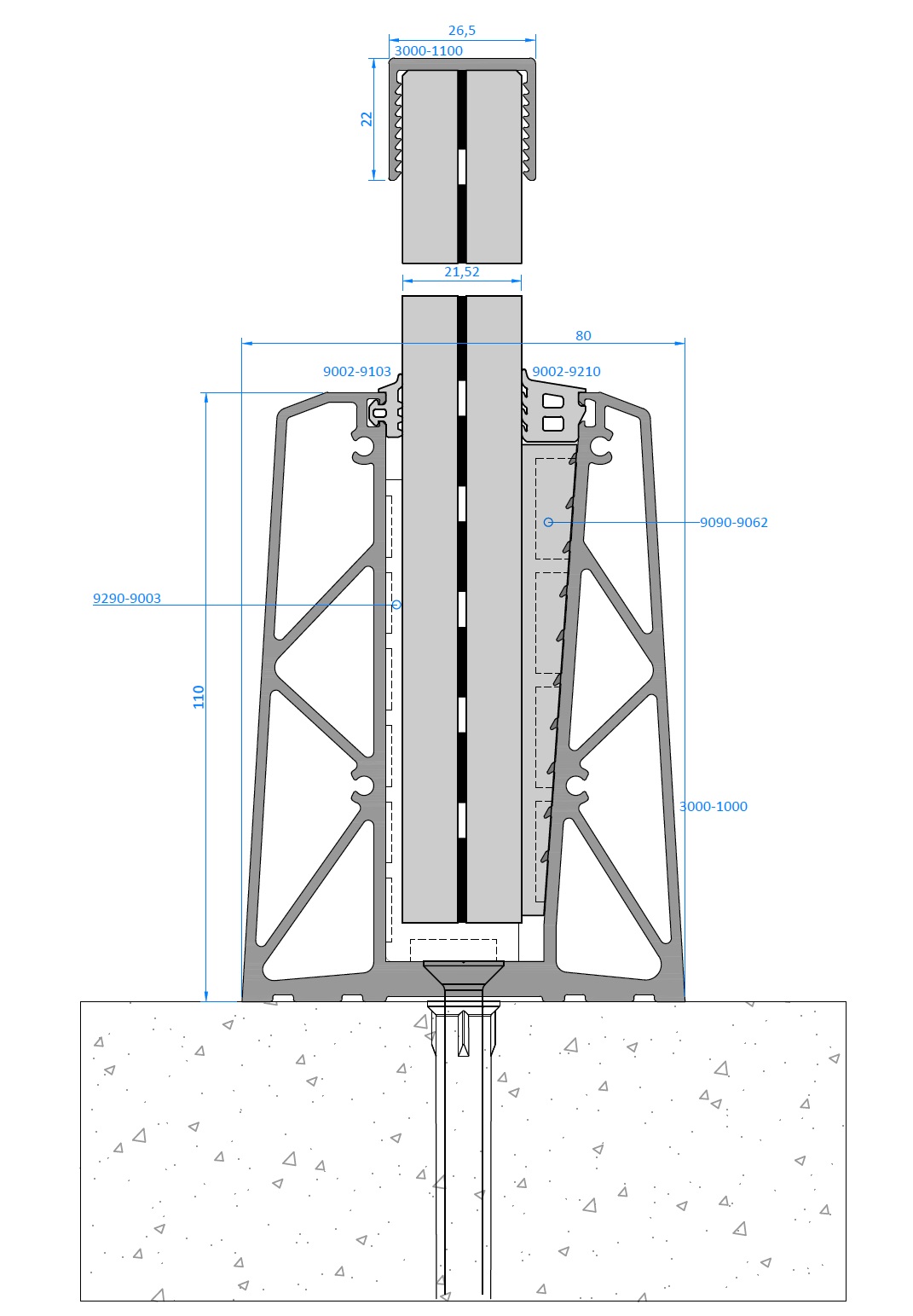 Achizitia acestui tip de profil de balustrada contine: profil balustrada, 3 cale de tip L/ml, 3 cale/ml de batut pentru fixarea sticlei in profil si doua tipuri de garnituri (in fata si spate) pentru o etansietate maxima.