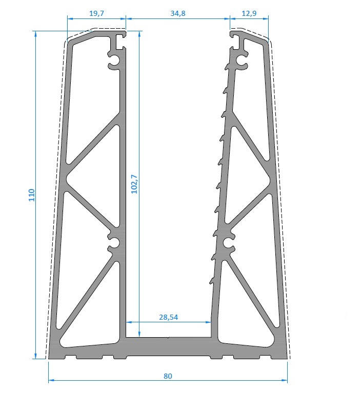 Profilul din aluminiu este fabricat standard in nuanta de inox (silver) sau poate fi vopsit in camp electrostatic in diverse culori RAL.